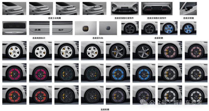 轮毂有6款样式,可选装双色车身、电动踏板、前灯组装饰件。